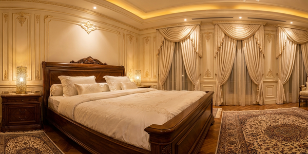 - اتاق بزرگ: تخت خواب چوبی با رنگهای تیره مثل قهوهای تیره یا سیاه گرما و صمیمیت بیشتری به فضا میبخشد