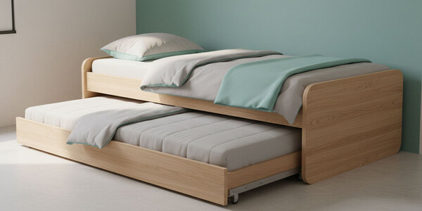 در این طراحی، یک تختخواب اضافی به صورت کشویی در زیر تخت اصلی تعبیه شده که در مواقع لزوم بیرون کشیده میشود. این نوع تختخوابها مناسب استفاده مهمان یا دو فرزند در یک اتاق هستند. در زمانهایی که به تخت دوم نیاز نیست، فضای اشغال شده به حداقل میرسد. ترکیب این مدل با تشک کودک یا نوجوان، گزینهای ایدهآل برای خانوادههاست.